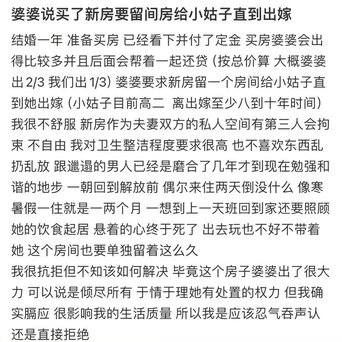 婆婆说买了新房要留间房给小姑子直到出嫁